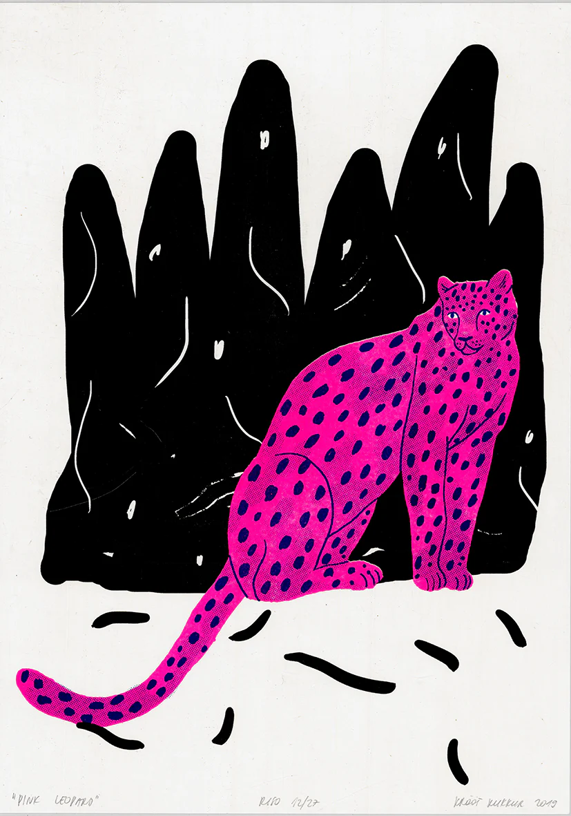 Signeeritud Krõõt Kukkur Illustrations “pink leopard” riso