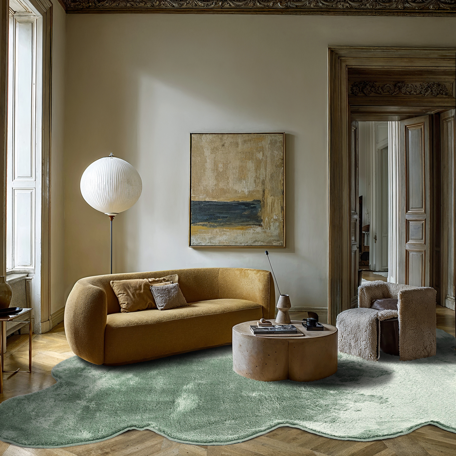 Pehme shaggy-vaip. Vaip on erakordselt sile – nagu jänesekarv. Õhuke, kaunis ja tihedalt kootud karv loob lainelise pinna, mis muutub sõltuvalt sellest, mis suunas karva siluda.