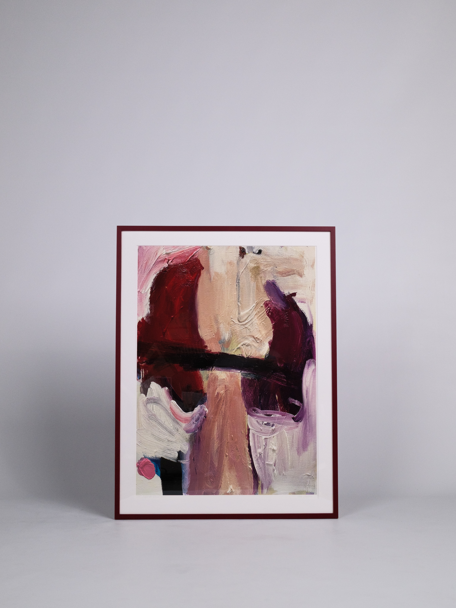 Eesti kunstniku Liisa Jugapuu signeeritud reproduktsioon maalist ”Ingel või Kirves”. Pilti ümbritseb punane täispuidust raam. Pildi suurus on 50x70cm ning raami suurus on 60x80cm.
