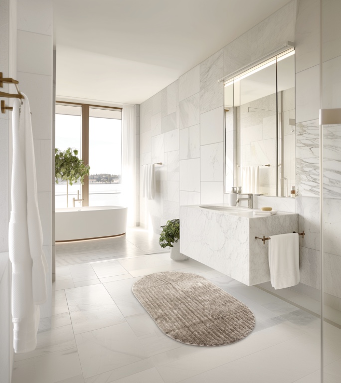 Ovaalne vannitoavaip Eveena – loodusvalge