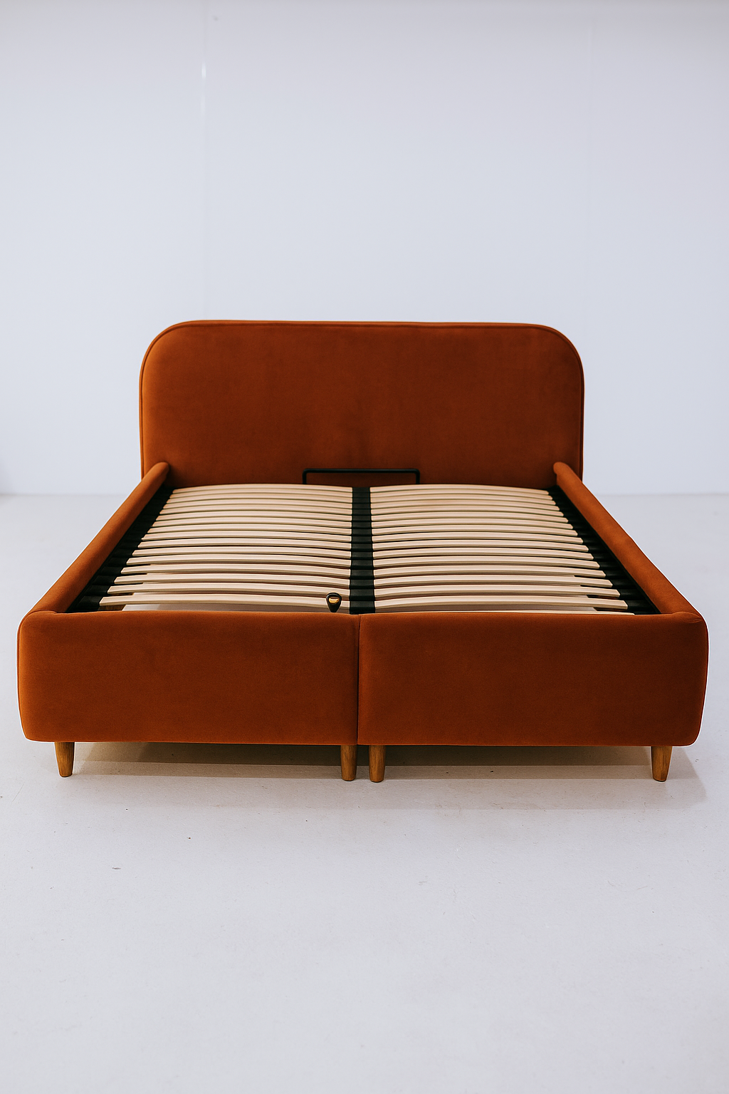 Rio by MATÍ on julge ja läbimõeldud kooslus minimalistlikust disainist ja peenest sarmikusest. Selle voodi voolujooneline vorm peidab endas ka praktilist panipaika, mis lisab elegantsile nutika funktsionaalsuse mõõtme. Kergelt kaarduv peats, täpselt viimistletud servad ning luksuslik sametkate loovad terviku, mis mõjub samaaegselt nii rahulikult kui isikupäraselt.