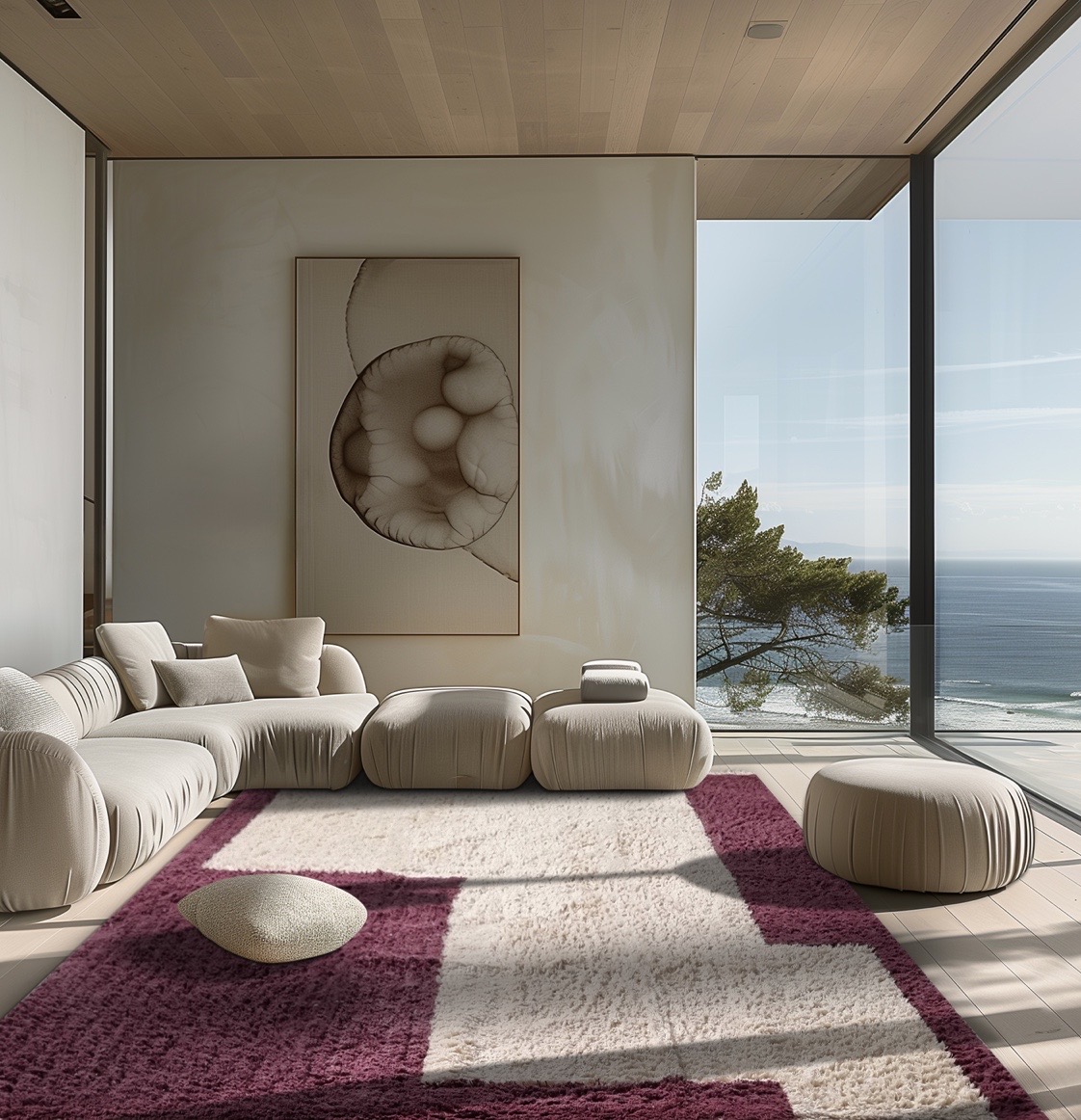 Puuvillane Vaip Ricco loodusvalge ja bordoo-lilla