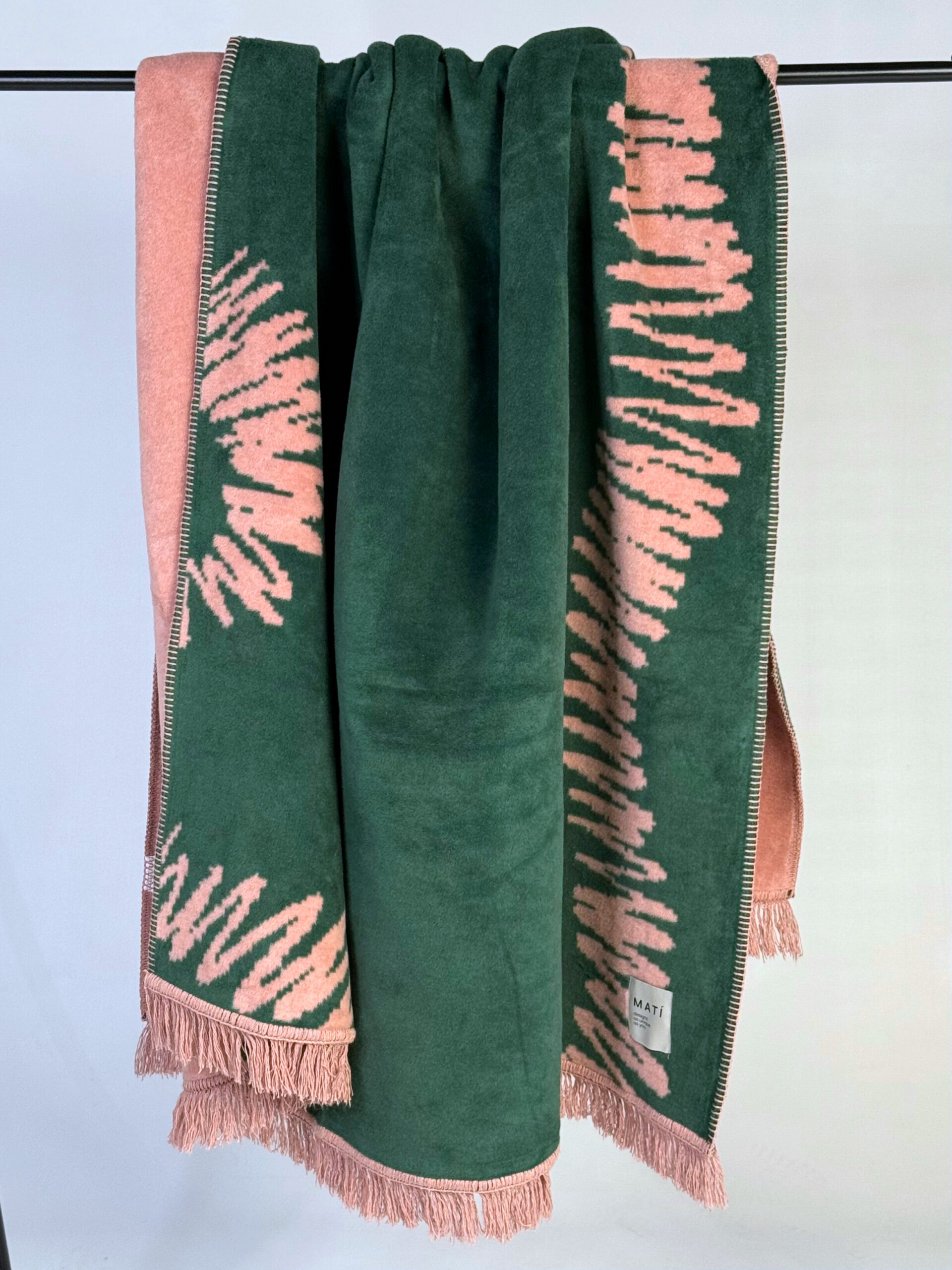 Lisa oma koju soojust ja isikupära pehme puuvillasegust pleediga! Sügavroheline toon ja roosad lainelised servad loovad mängulise, kuid elegantse ilme – ideaalne aktsent nii diivanile kui ka voodile.