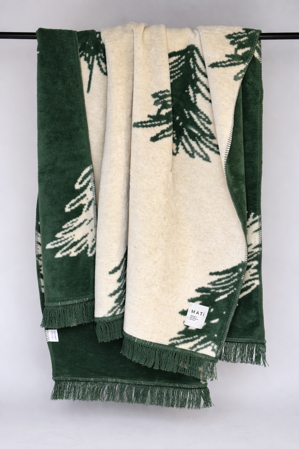 Lisa oma koju soojust ja isikupära pehme puuvillasegust pleediga! Selle hele taust ja tumeroheline kuusemotiiv loovad rahuliku ja põhjamaise meeleolu.