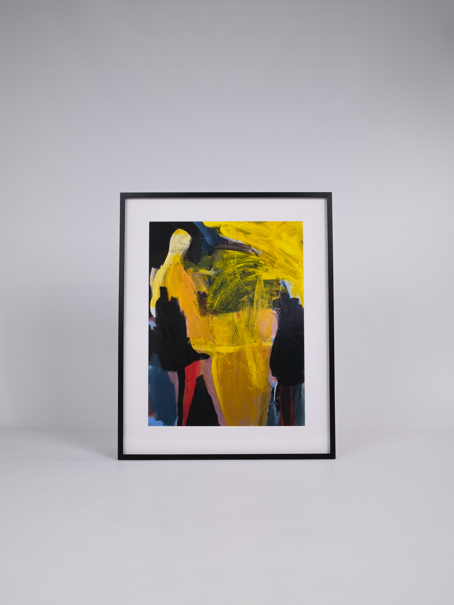Eesti kunstniku Liisa Jugapuu signeeritud reproduktsioon maalist ”Keegi sukkpükstes”. Pilti ümbritseb must täispuidust raam. Pildi suurus on 80x100cm ning raami suurus on 100x120cm.
