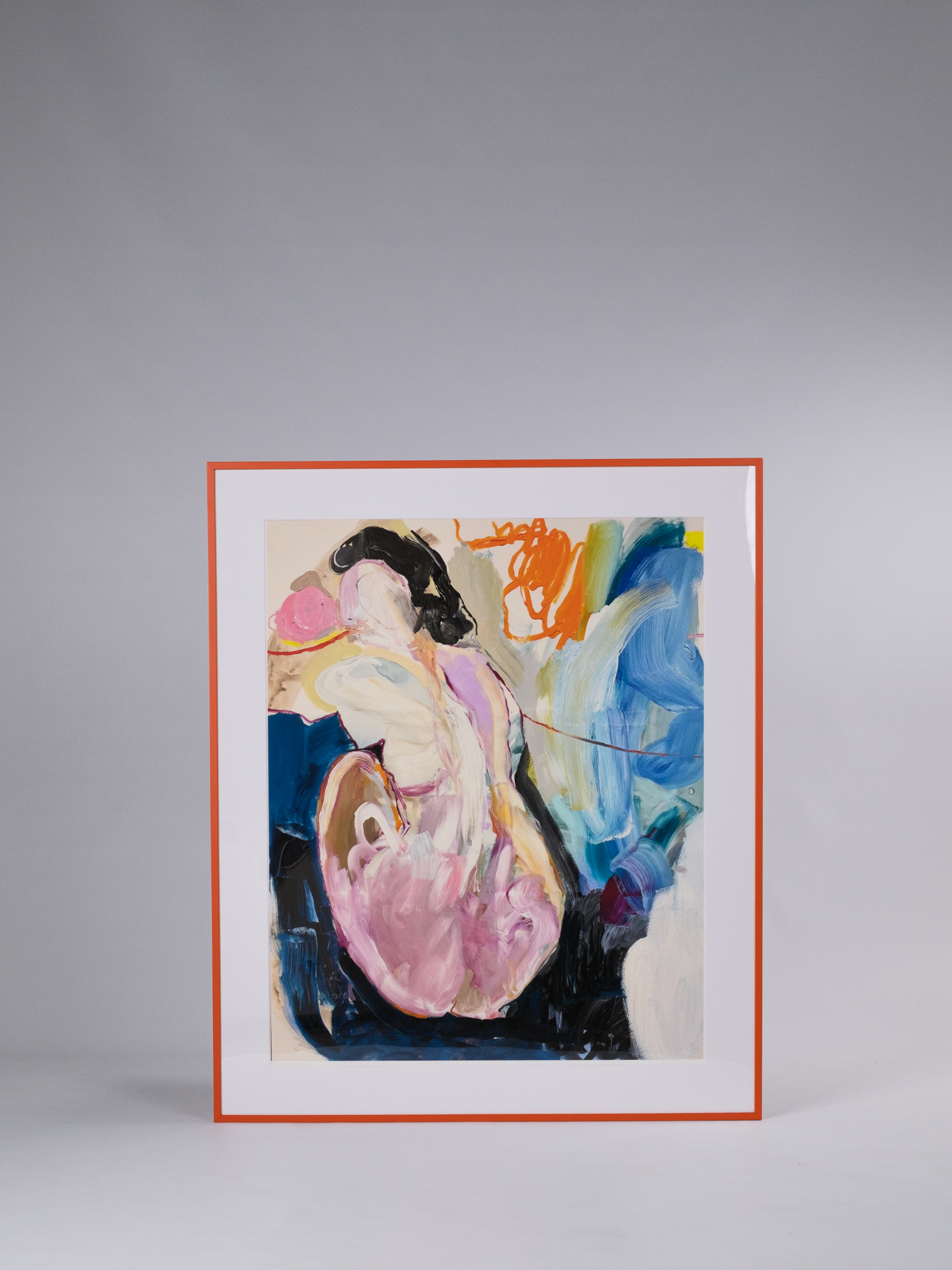 Eesti kunstniku Liisa Jugapuu signeeritud reproduktsioon maalist ”Naine kõrrega”. Pilti ümbritseb oranž täispuidust raam. Pildi suurus on 80x100cm ning raami suurus on 100x120cm.